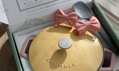 At Crumble, we love to cook and we hope you do too. Your bonus pack includes everything you need to begin your culinary journey; a Classic Round Dutch Oven, a Non-Scratch Silicone Spoon and two Oven Mitts.