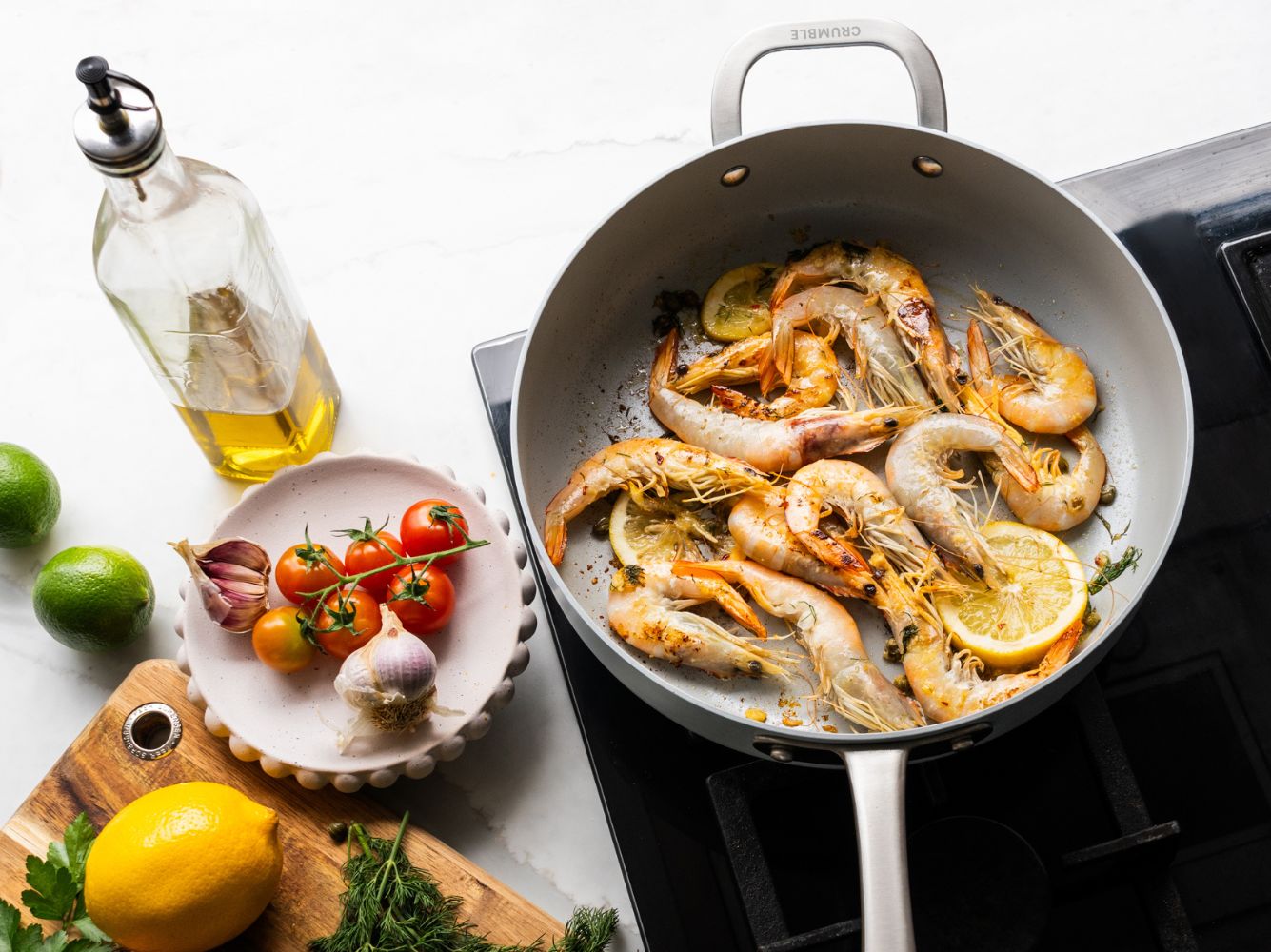 The Crumble Ceramic Non-Stick range is coated with two layers of Swiss PFAS-free ceramic coating, which is 100% non-toxic, durable and easy to cook with a superior non-stick effect.